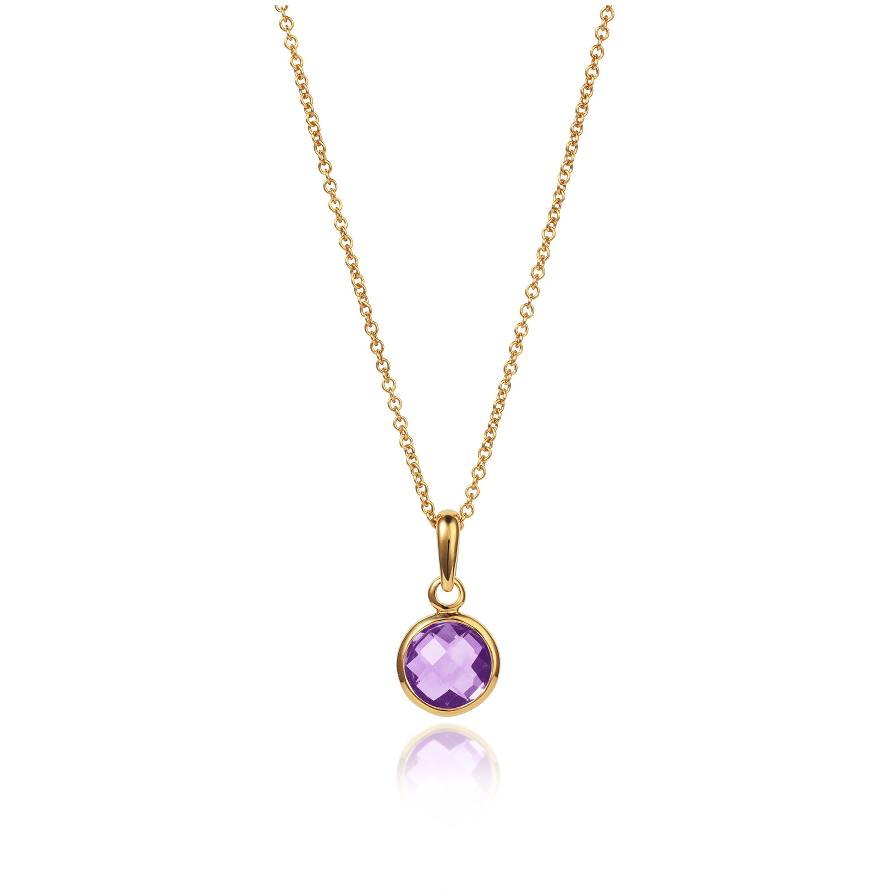 Minimal and easy to style, this pretty 18ct gold vermeil necklace is set with a round, faceted amethyst gemstone. Perfect for adding a pretty colour accent, purple amethyst is the birthstone for February.