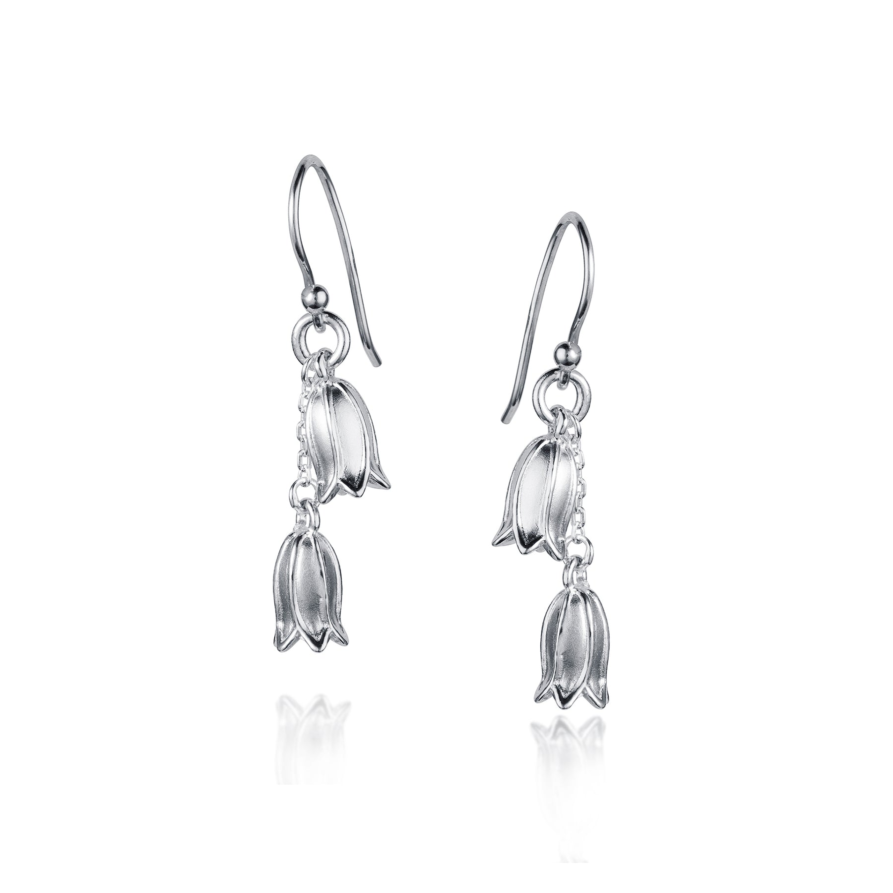 Add a touch of floral elegance with these long silver drop earrings featuring double bluebell flowers. Crafted from sterling silver, these delicate yet eye-catching earrings create a graceful, feminine look. Perfect for special occasions, evening events, or adding a whimsical floral touch to your everyday style. Lightweight and comfortable, they make a thoughtful gift for nature-inspired jewellery lovers.