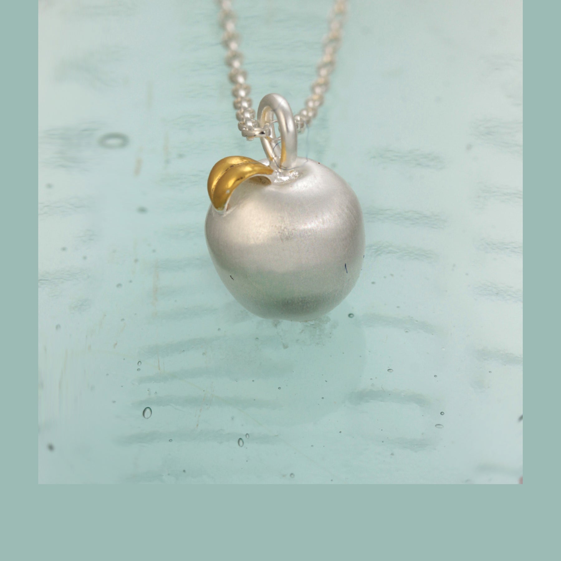 Silver & Gold Apple Necklace - Apple Charm Pendant