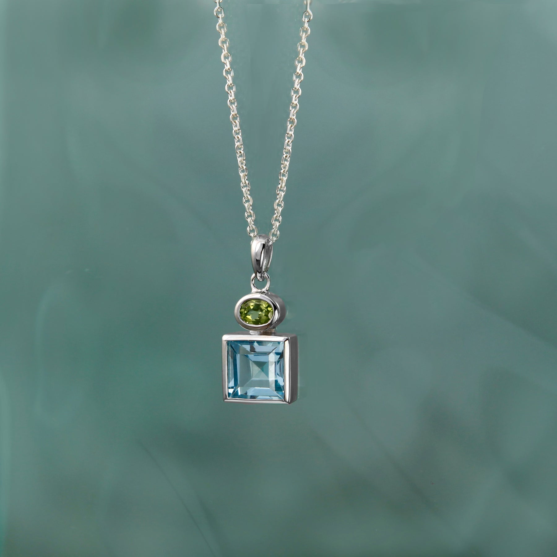 Sterling Silver Necklace With Blue Topaz & Peridot Gemstones