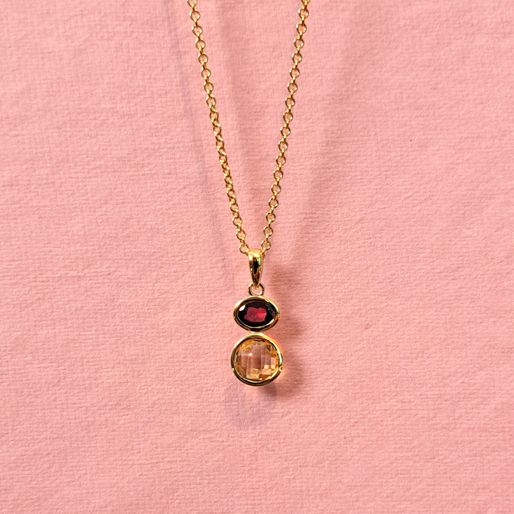 Gold Vermeil Necklace With Natural Citrine And Garnet Gemstones