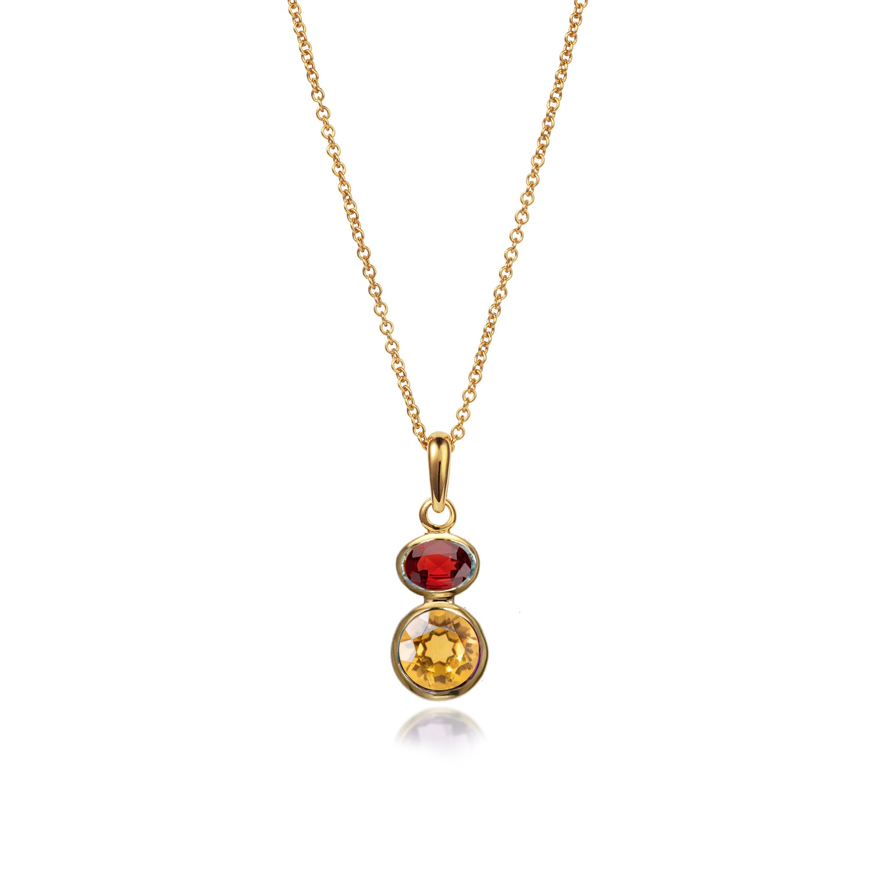 Elegant gold vermeil necklace with genuine citrine and garnet gemstones carefully selected for their colour and brilliance. The pretty pendant is handcrafted with a thick layer of 18ct gold over solid sterling silver offering the look and durability of solid gold without the hefty price. Perfect for adding a touch of luxurious colour day or night.