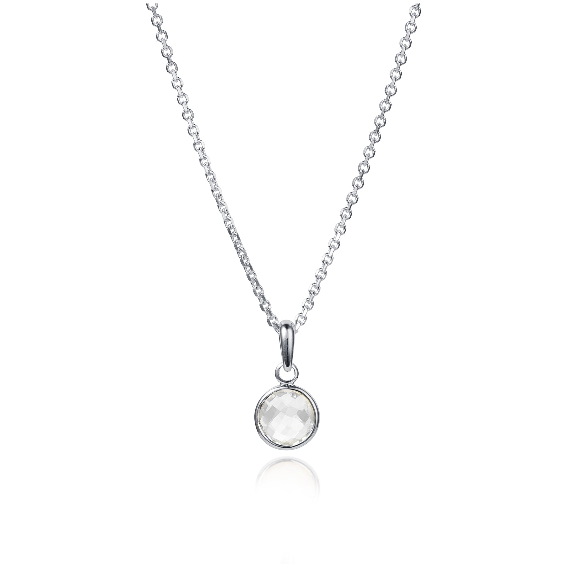 Minimal and easy to style this pretty sterling silver pendant is set with a round, faceted white topaz stone. Perfect for adding a sparkly accent, vibrant white topaz is the birthstone of April.