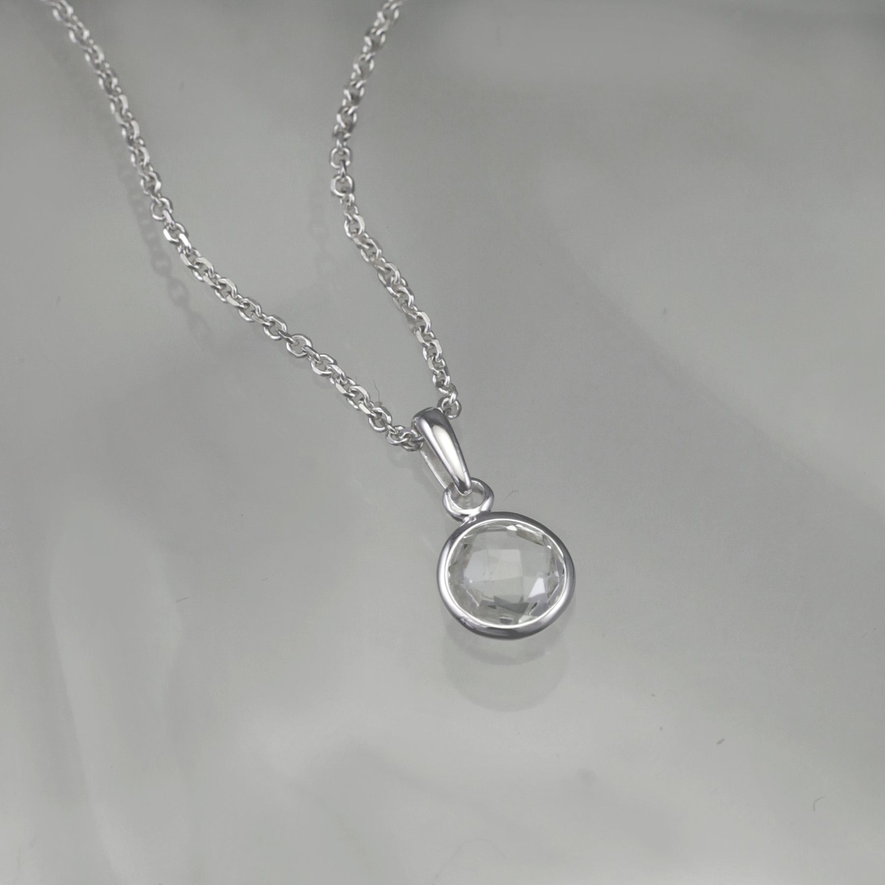 Silver Necklace With White Topaz Gemstone | April Birthstone