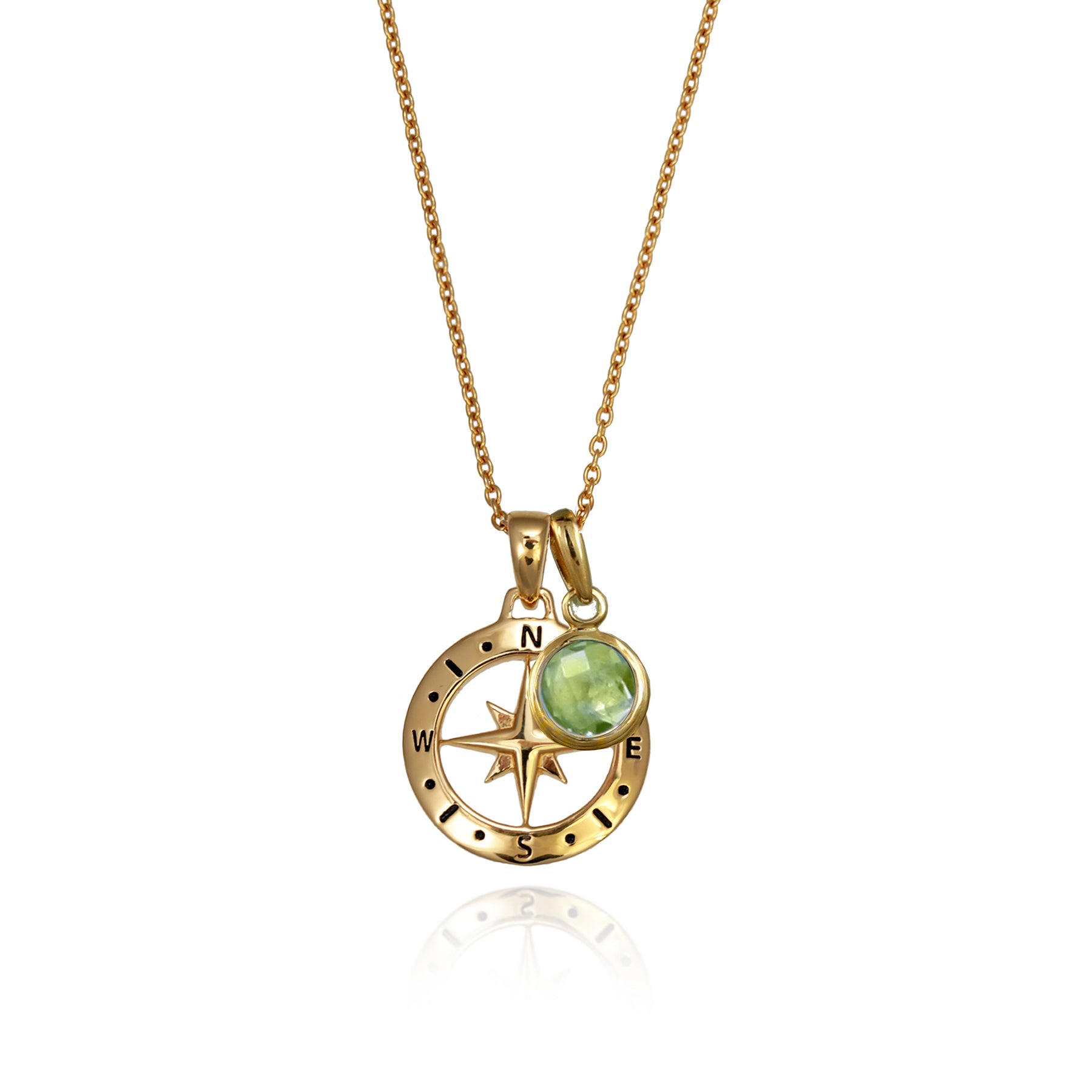 Our Gold vermeil "Love’s Compass" Necklace with Birthstone Charm adds a personal touch to the classic compass design you already adore. This version adds a personal touch with sparkling natural birthstone charms, making it perfect for celebrating loved ones or marking special moments.