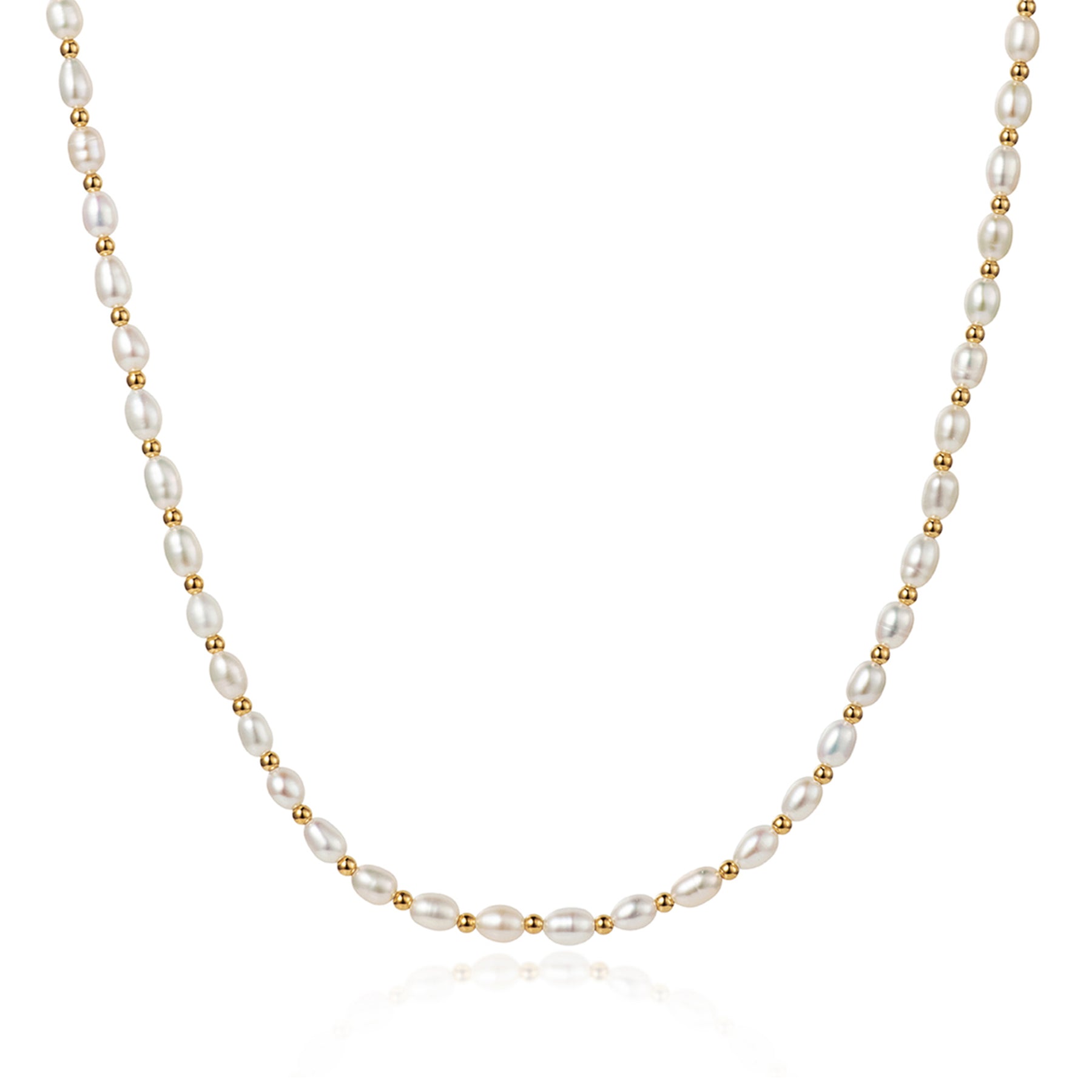 This elegant 18ct gold vermeil seed pearl necklace features lustrous freshwater seed pearls set between round, gold spacer beads. This modern twist on a classic pearl necklace is so easy to style. Pearls look great worn casually or on special occasions and go with everything.