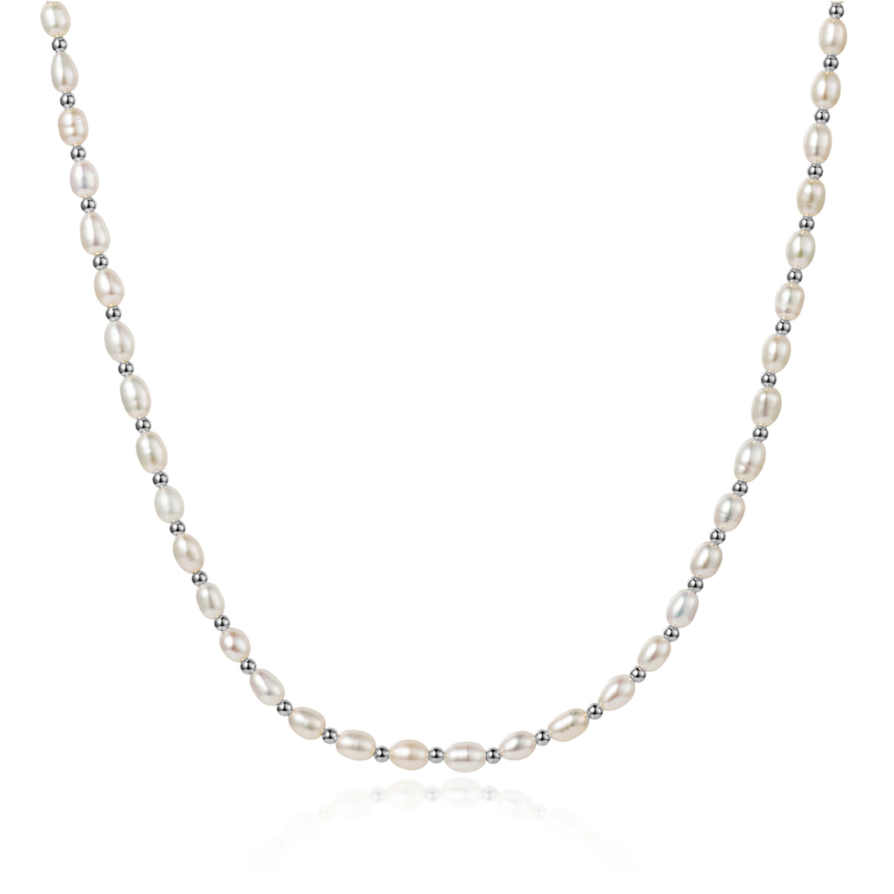 This elegant sterling silver freshwater seed pearl necklace features lustrous freshwater pearls set between round, silver spacer beads. This modern twist on a classic pearl necklace is so easy to style. Pearls look great worn casually or on special occasions and go with everything.