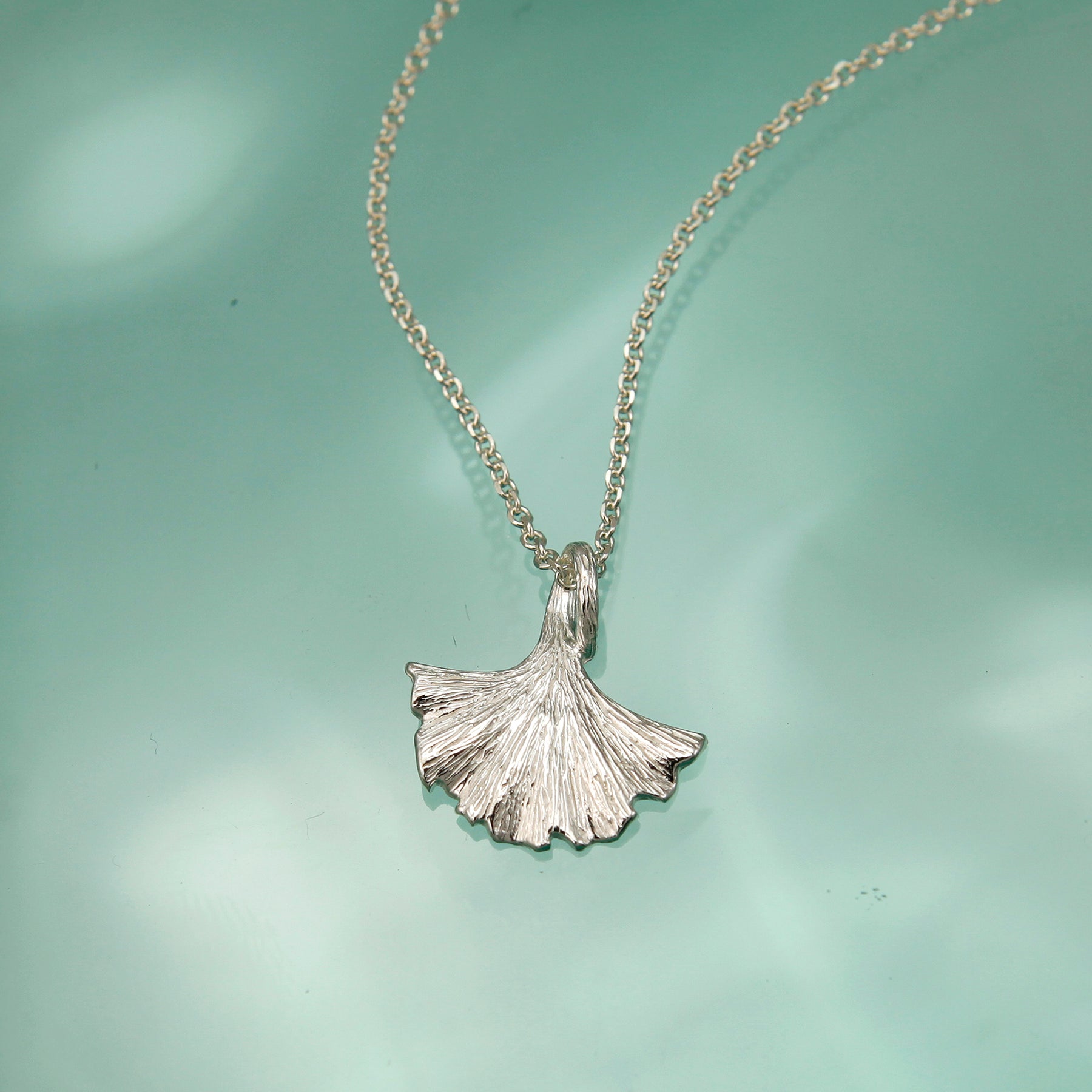 Bring the beauty and enchantment of nature to your jewellery collection with this lovely sterling silver Ginkgo leaf pendant and chain. Minimalist and elegant the Ginkgo necklace is perfect for everyday wear or special occasions.