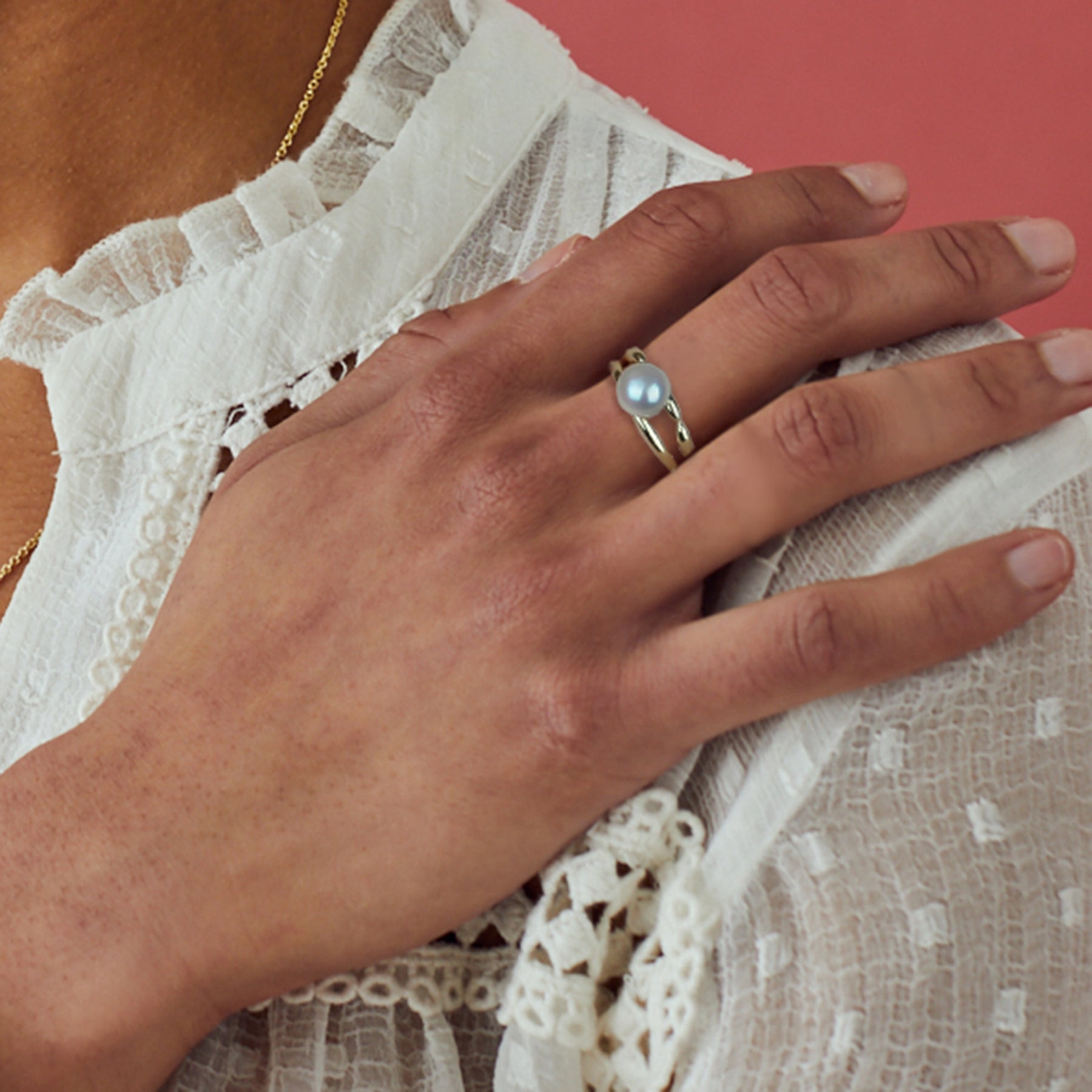 This elegant 18ct gold vermeil pearl ring features a lustrous freshwater pearl set between two contrasting gold bands. Designed for timeless simplicity this easy to style modern ring can be worn everyday or on special occasions making it the perfect gift.