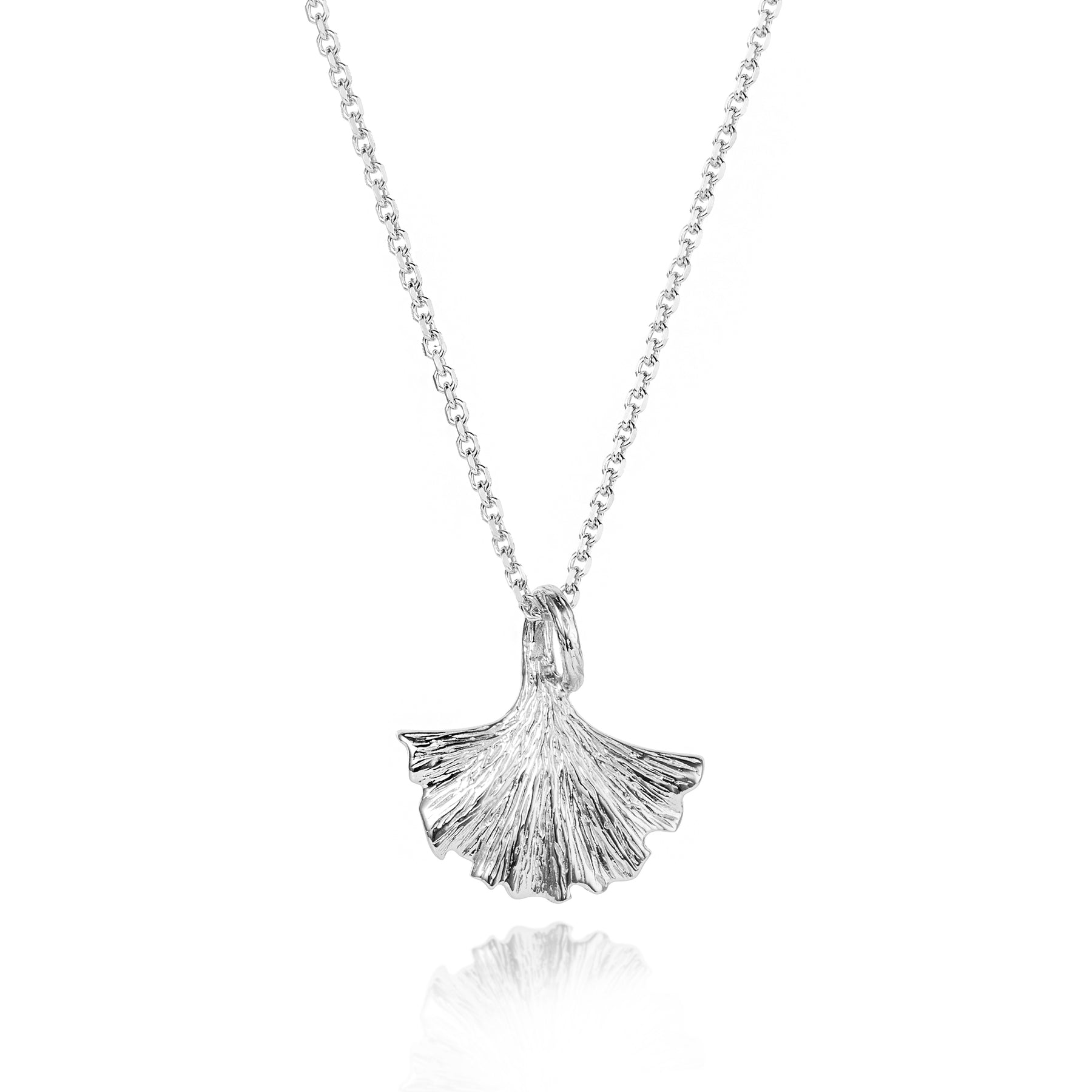 Enchanting ginkgo leaf pendant in sterling silver with fabulous delicate detailing. Perfect for everyday wear or special occasions the silver ginkgo necklace is completed with a 45cm sterling silver chain with a high quality lobster claw clasp.