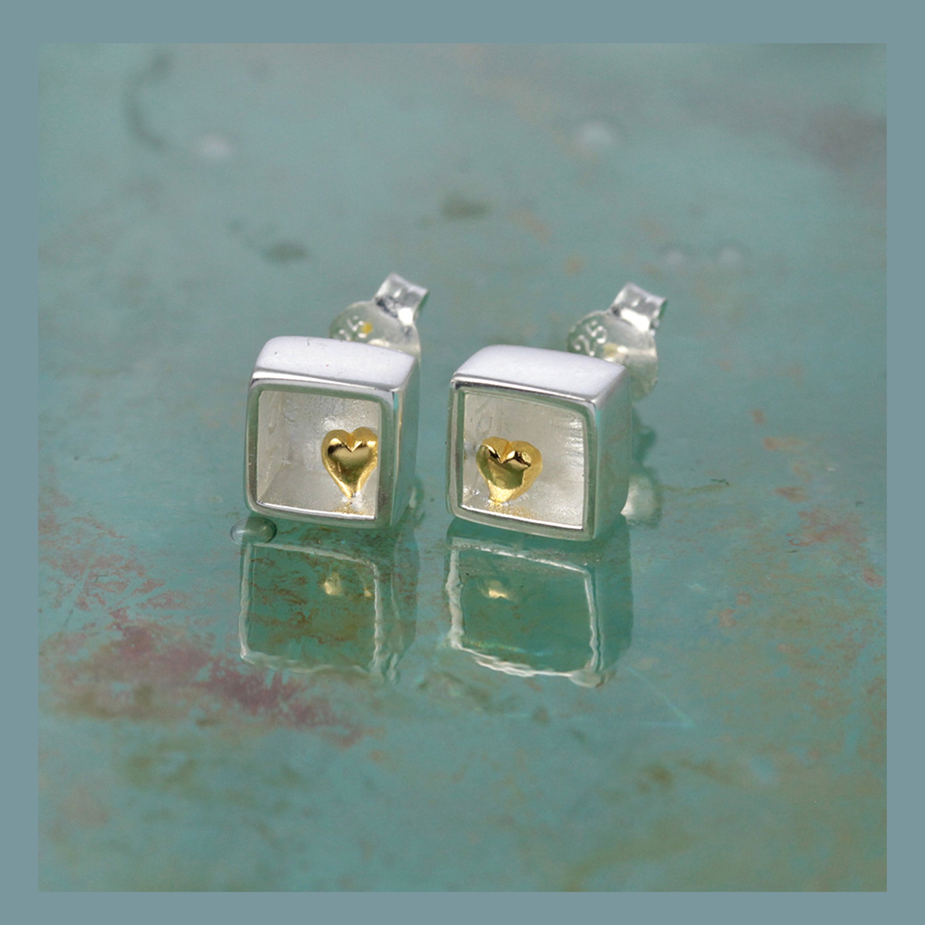 Gorgeous silver stud earring that contain a gold heart. Designed to celebrate family, friends and self-love the Heart of Gold post earring make a delightful gift.