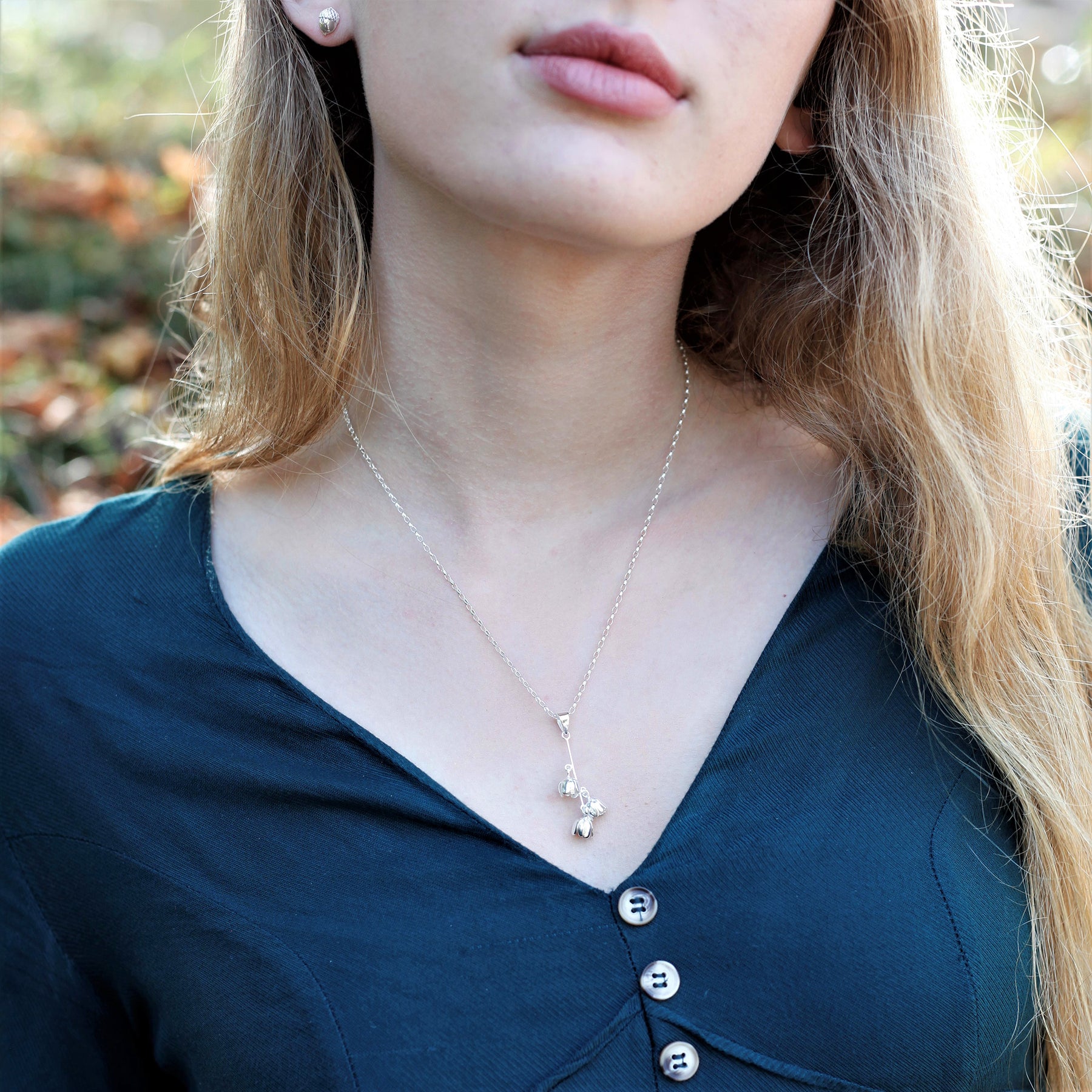 Delicate and feminine, this pretty silver necklace with three lily of the valley flowers blends the enchantment of nature perfectly with minimalist, modern style.