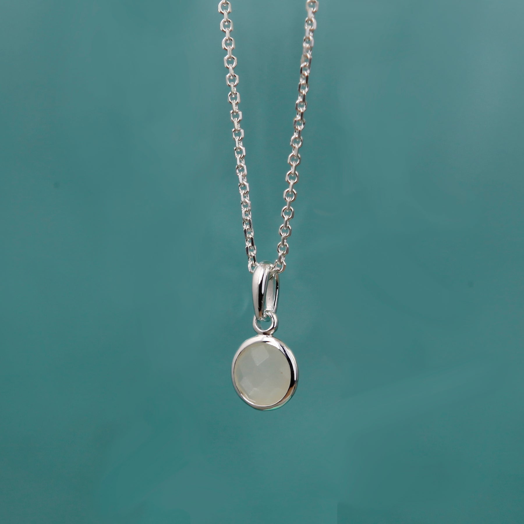 Minimal and easy to style this pretty sterling silver pendant is set with a round, faceted white moonstone. Perfect for adding a sparkly accent, moonstoon is a June birthstone