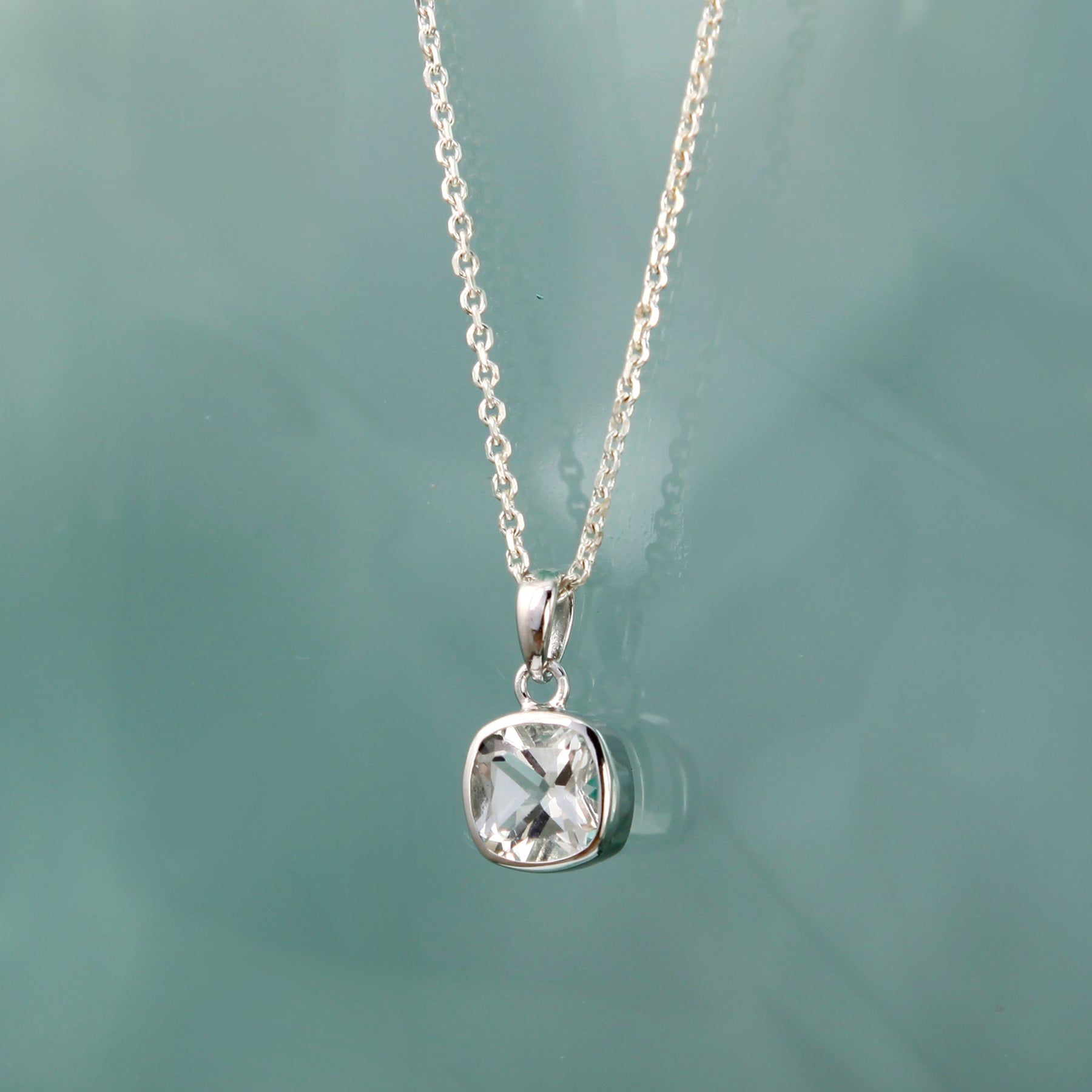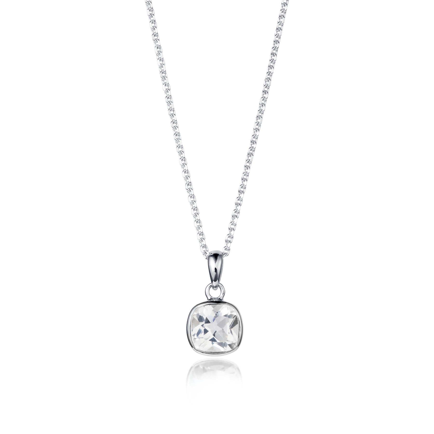 Easy to style, this elegant pendant set with a natural cushion-cut white topaz gemstone is perfect for adding just a touch of dazzle whatever the occasion.