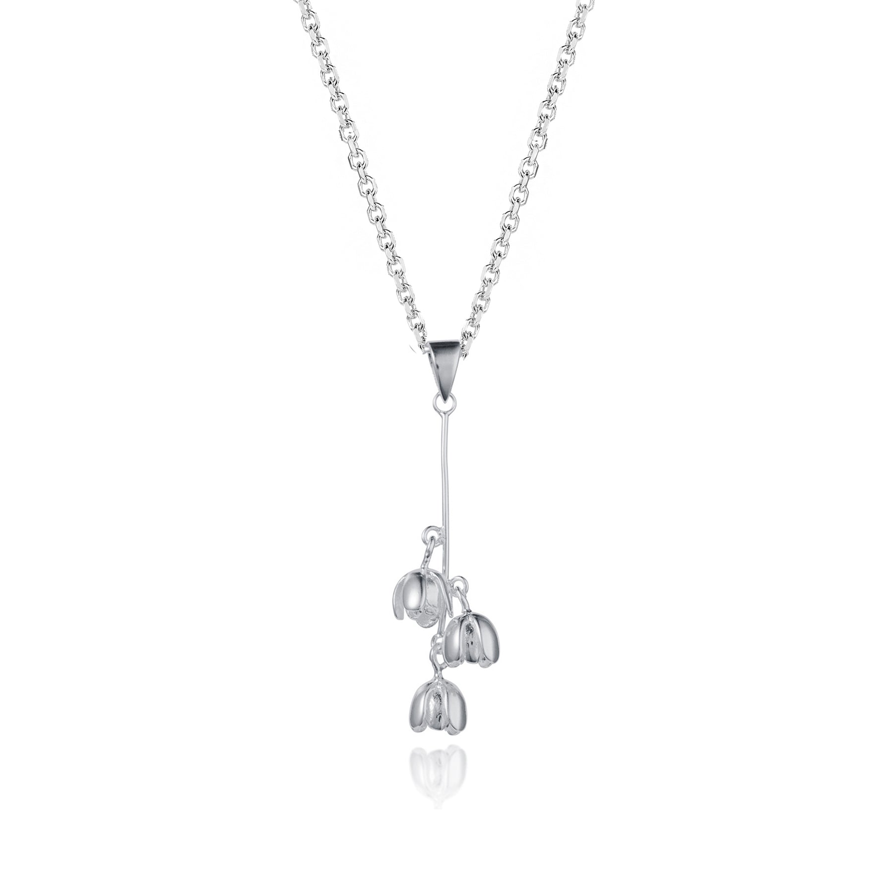 Delicate and feminine, this pretty silver necklace with three lily of the valley flowers blends the enchantment of nature perfectly with minimalist, modern style.