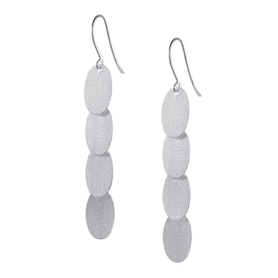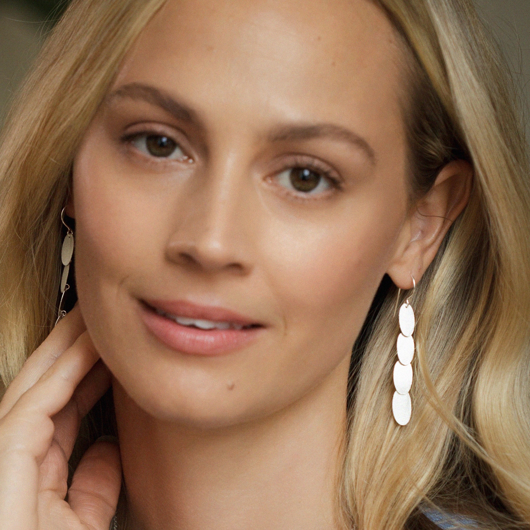 Fabulous long dangly earrings with a lovely brushed silver finish. The Confetti earring is big and luxurious but incredibly light to wear making it perfect for everyday wear or a special event.