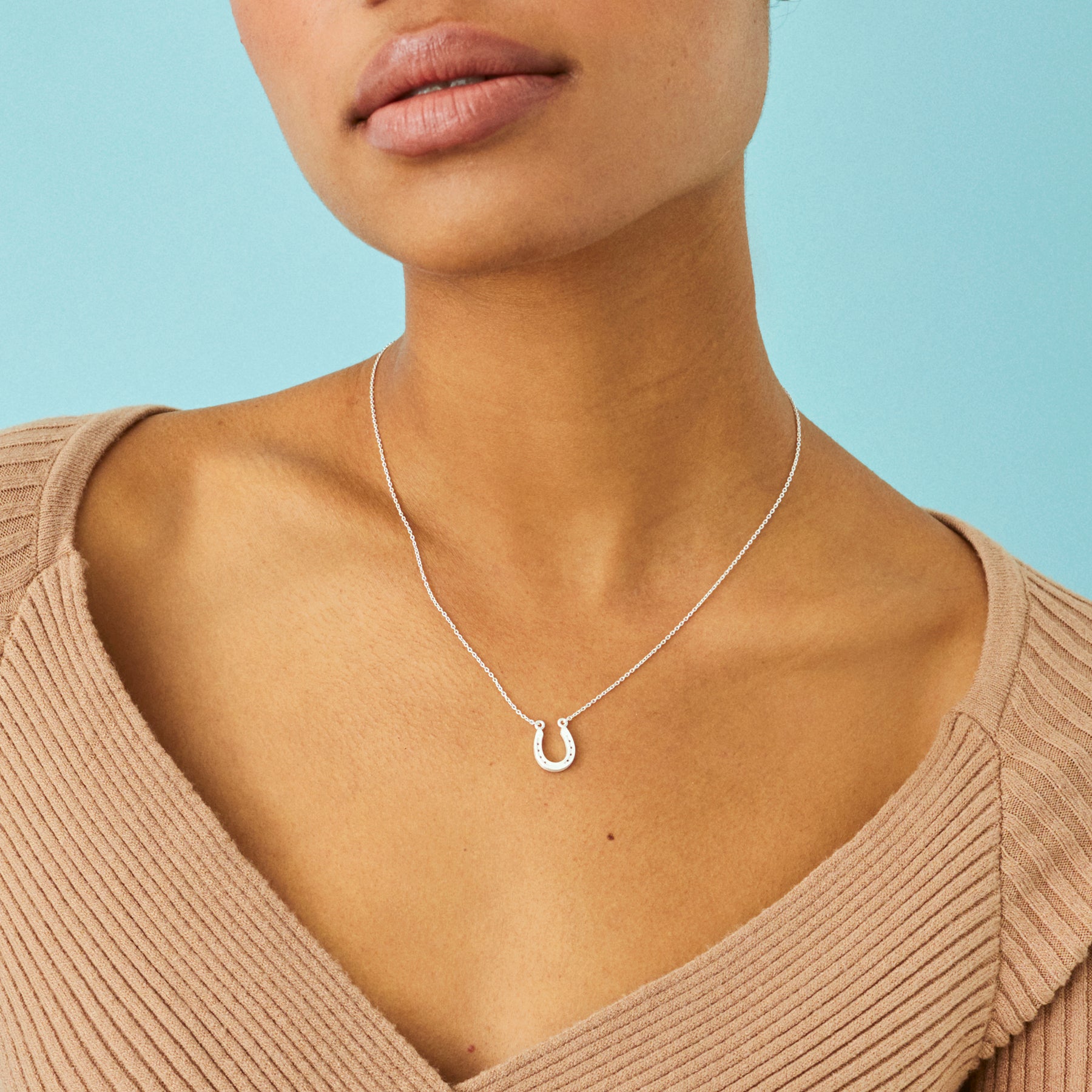 Beautifully detailed silver horseshoe necklace. A symbol of good luck and fortune this pretty necklace makes an ideal gift.